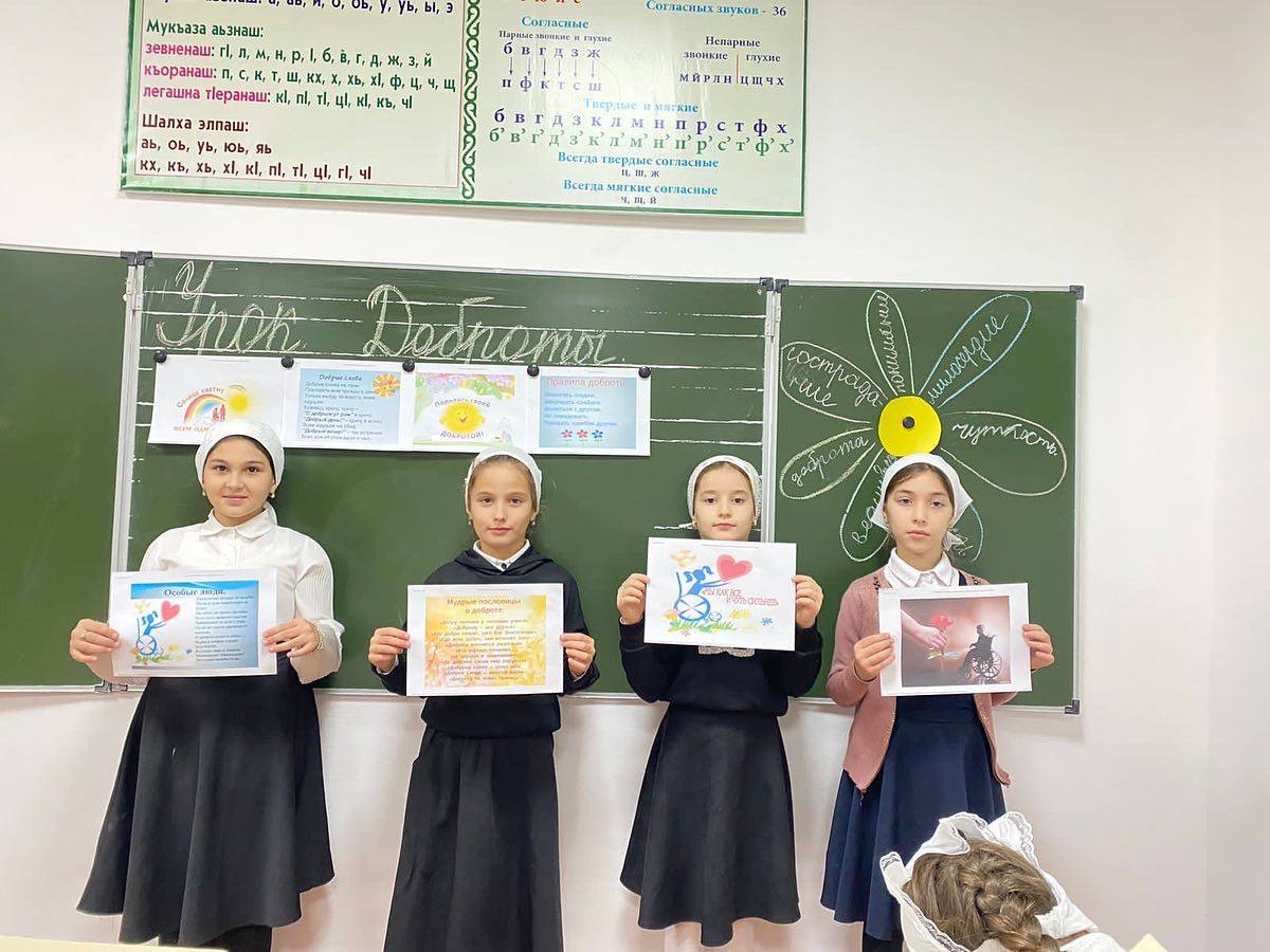 07.12.2022Учитель начальных классов Магамаева М.И. провела в 3 «а» классе классный час на тему: «Урок доброты». Цели классного часа: - учить детей нравственным понятиям: доброта, вежливость; - воспитывать взаимоуважение, вежливое обращение к окружающим; - развивать творческие возможности детей.