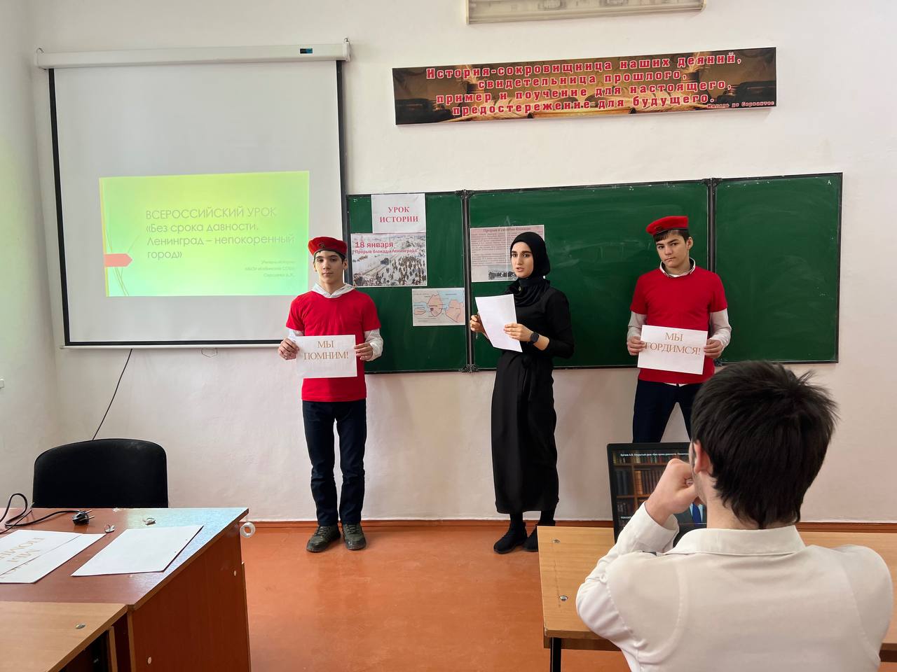 27.01.202327 января учителем истории МБОУ «Кобинская СОШ» Серсаевой Д.Ж. совместно с активистами отряда «Юнармия» был проведен Всероссийский урок «Без срока давности. Ленинград-непокоренный город».Целью урока было закрепление в общественном сознании подрастающего поколения исторической правды и юридической правомочности темы геноцида советского народа со стороны нацистов и их пособников в годы Великой Отечественной войны.