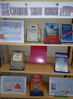 В рамках Дня Конституции РФ в школьной библиотеке оформлена книжная выставка, на которой представлены книги, энциклопедии, справочные издания, посвященные конституционному праву, истории государства, государственной символике России и истории создания Конституции, а также официальный текст Конституции РФ.