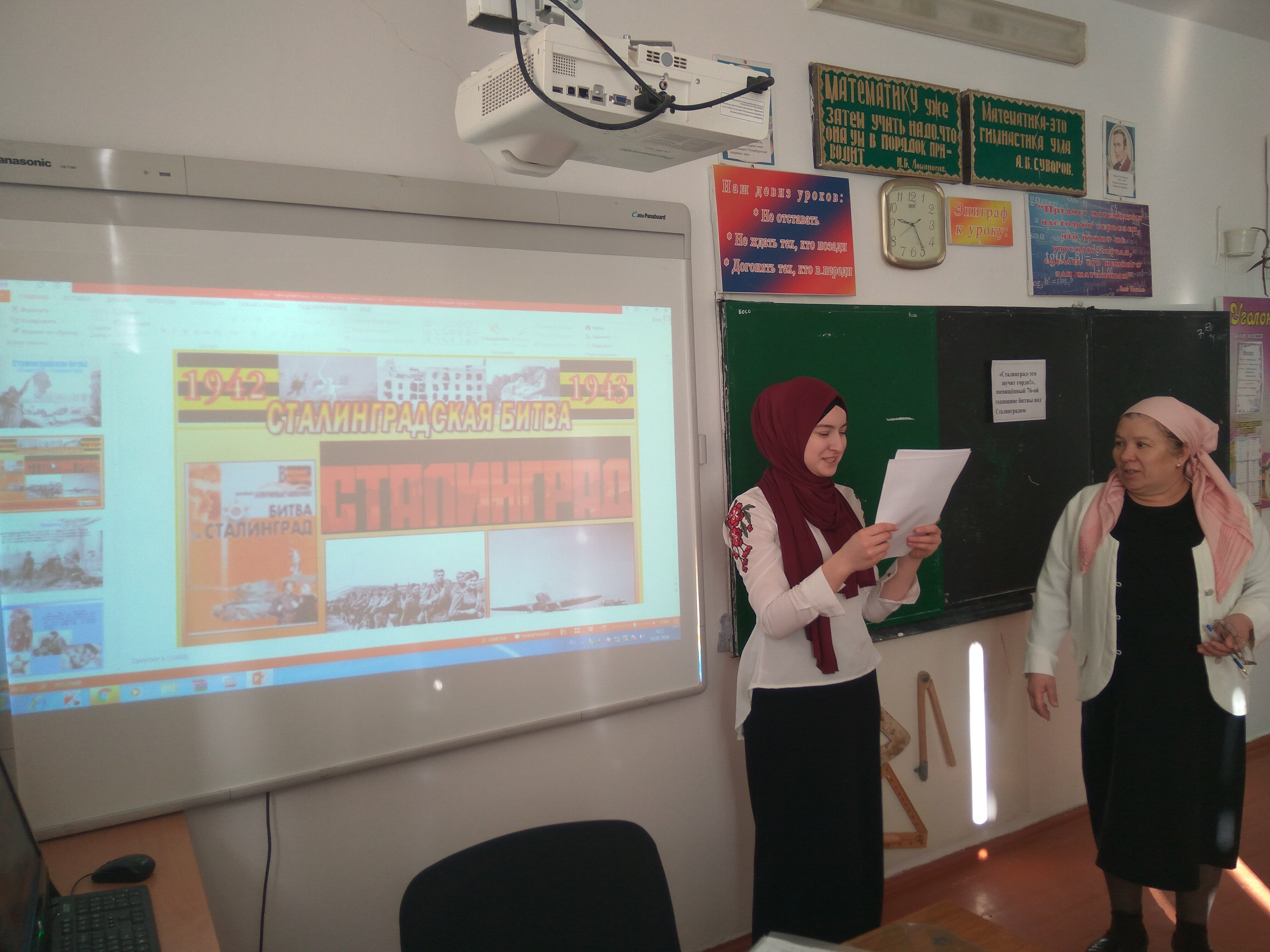 Сегодна 02.02.18г учитель истории Акмамбетова К.Д.совместно с классным руководителем 11 класса Сатуевой А.Л показали открытый урок в 11 классе: "Урок-мужества " , посвященная 76-й годовщине Сталинградской битвы.