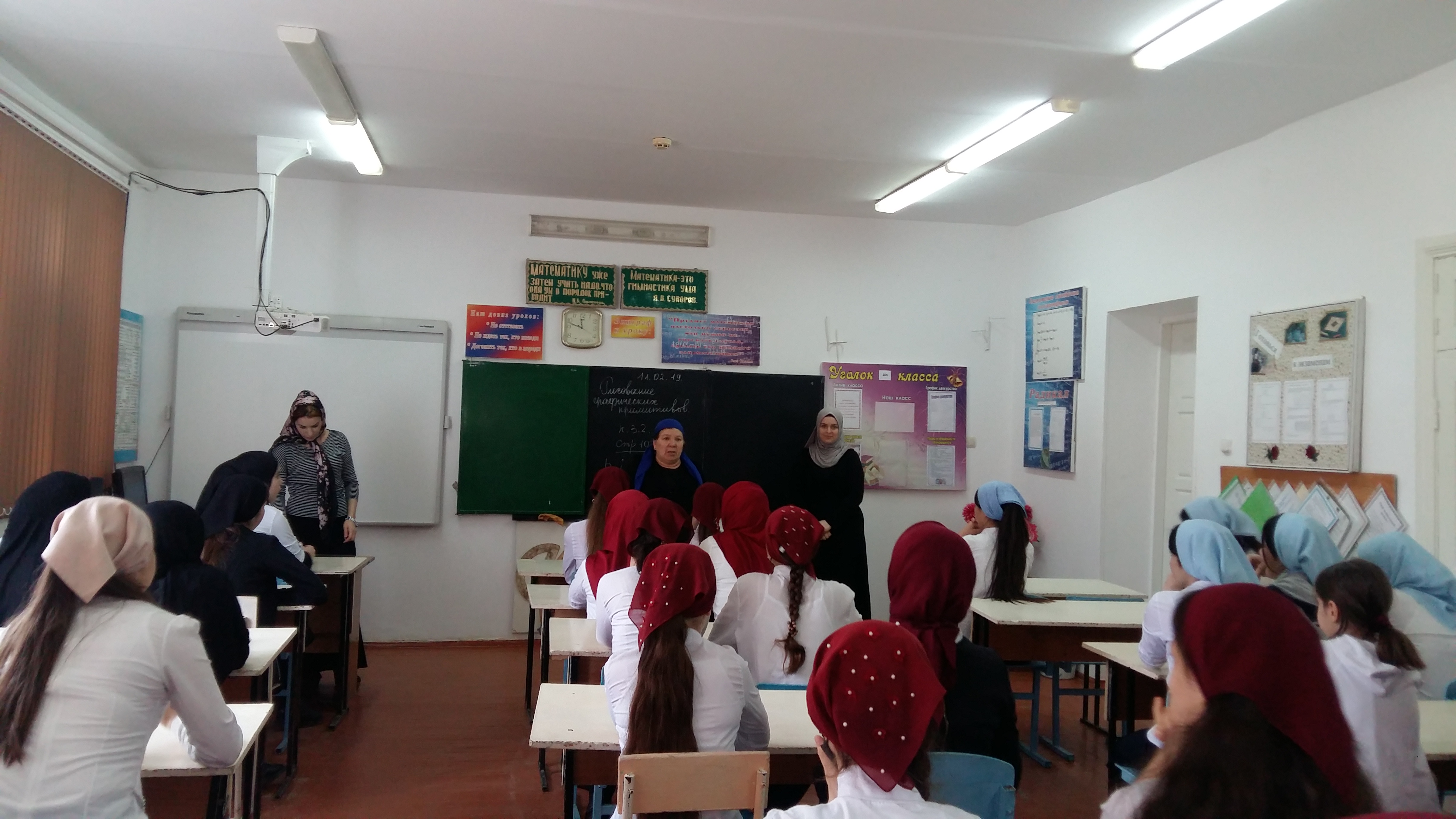 Сегодня заместитель директорв по ВР Акмамбетова К.Д., социальный педагог-Шахгераева М.С, психолог -Геримова Л.А, библиотекарь-Магомедханова Р.А. провели профилактическую беседу с девочками с 1 по 11 кл по духовно-нравственному воспитанию.