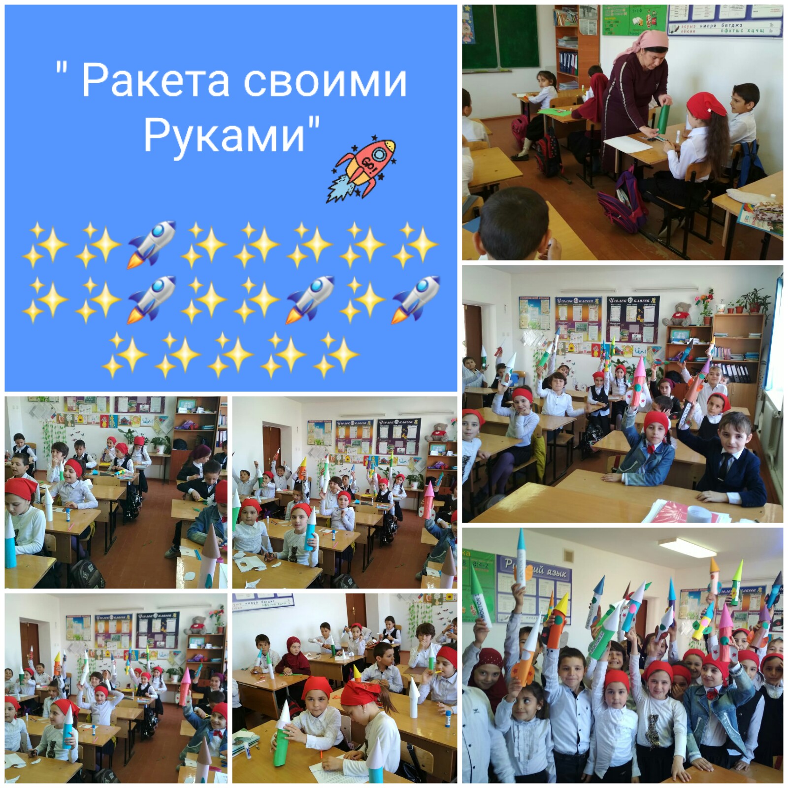 Вся школа помнит эту дату- проводит гагаринский урок (классные часы, открытые уроки , подделки руками детей.